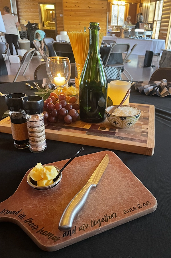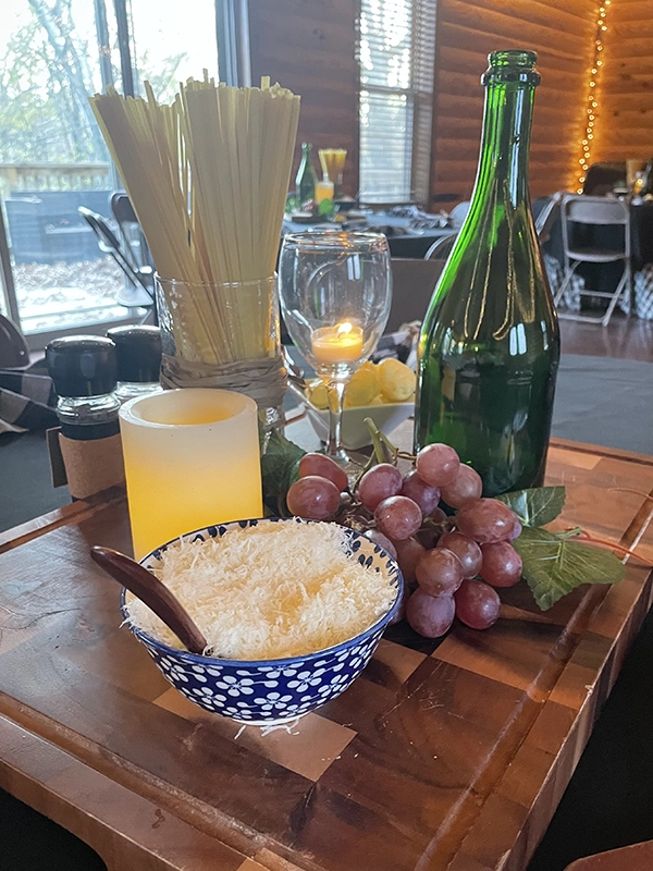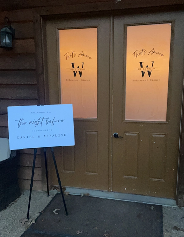 That’s Amore: The Night Before – Rehearsal Dinner An Italian theme with music, ambiance and delicious food. Added a film to make the doors personalized and frosted. Each table has its own board with grapes, wine and cheese. The bread boards were personalized with biblical sayings. By adminMarch 16, 2024Leave a Comment on That’s Amore: The Night Before – Rehearsal Dinner